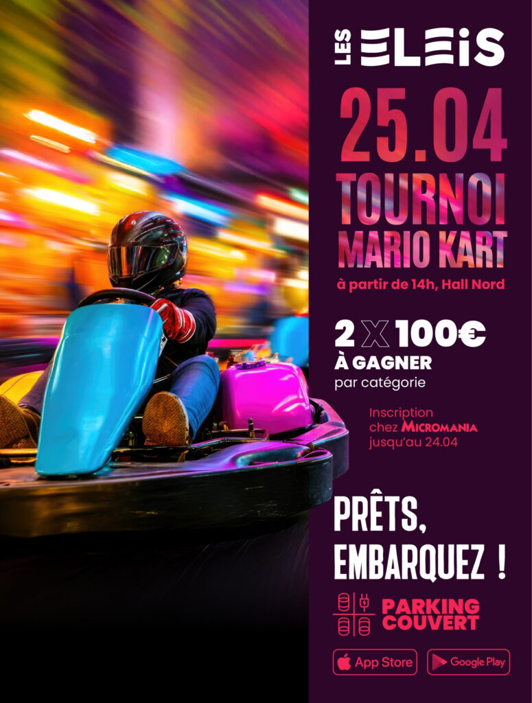 Le tournoi Mario Kart fait son retour aux Eleis ! Rendez-vous samedi 25 avril dès 14h pour venir vous tester à Mario Kart et tenter de remporter 100 € ! Animation gratuite et accessible à tous.