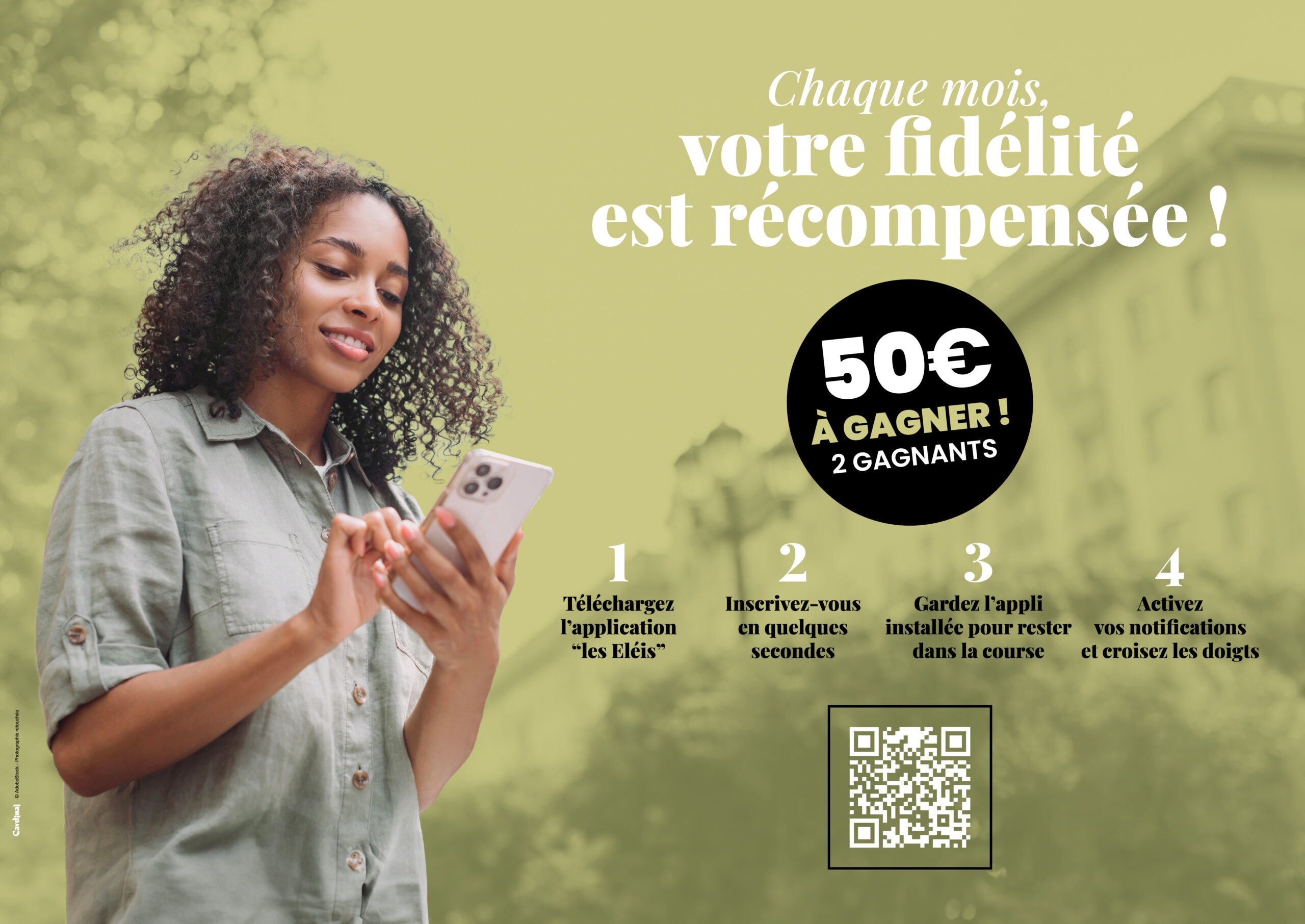 Téléchargez l’application Les Eléis et tentez de gagner 50 € tous les mois grâce au tout nouveau programme de fidélité !